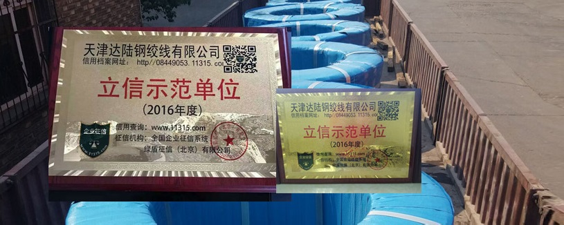 公司诚信经营,有完善的企业管理制度和质量保障体系,先进的生产技术和检验设备保证了产品质量,并且“达陆”牌预应力钢绞线、钢丝系列产品分别通过国检、铁道部、冶金部等国家权威机构的质量检验认可,通过的ISO9001:2000质量管理体系认证是公司始终如一的质量体系管理准则。